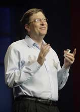 ¸ÚÁø ¸»ÀÌ ÀÖ¾î¼ ¼Ò°³ÇÑ´Ù ´ÙÀ½Àº ºô °ÔÀÌÃ÷ ¸¶ÀÌÅ©·Î¼ÒÇÁÆ®(MS) ȸÀåÀÇ °³¸· ±âÁ¶¿¬¼³À» ¿ä¾àÇÑ ½Å¹® ±â»çÁß ÀϺÎÀÌ´Ù. Gates said there was a negative perception of high tech following the collapse of the tech bubble more than two years ago. "Even though we're in an economic downturn, we're in an innovation upturn," he said. "I believe people are dramatically underestimating all the innovation going on in our industry, all the great products that are on the way, and the positive contribution that technology is making to our economy." Gates said the industry is moving away from focusing on personal computers and instead seeks to move into a world of personal computing -- where portable and everyday gadgets can perform tasks typically run on full-powered systems. Smart Personal Objects Technology ( SPOT) would empower everyday devices to draw on the information from the Internet. Unlike Internet appliances and other fantasies of the dot-com boom, their functionality would be more focused. A travel alarm clock, for instance, would automatically detect its time zone and set itself accordingly. It also could pull up news, weather and other local information. The "smart" pen also would pull content from the Internet. Such products are expected to be made available within a year. Prices were not announced but are expected to be in the higher range of their unconnected counterparts. Gates also showed off portable, cordless monitors that would work in the wireless networks that are increasingly popping up at homes. Smart Displays, which would start at $999, are flat-panel monitors that detach from a desktop and can be moved across the room. Like the Tablet PCs released earlier this month, their screens can be used as a writing surface. But unlike the tablets, Smart Displays would not be standalone computers. They would store data on and use the computing power of a regular desktop computer running Windows XP Professional.