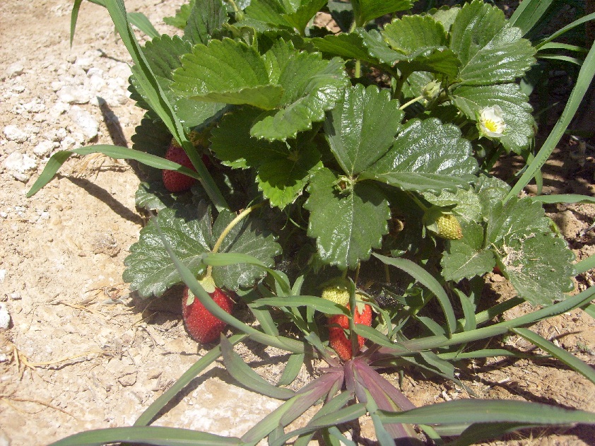 2011년 4월에 구입하여 심어 놓은 묘목에서 벌써 딸기가 열렸다.