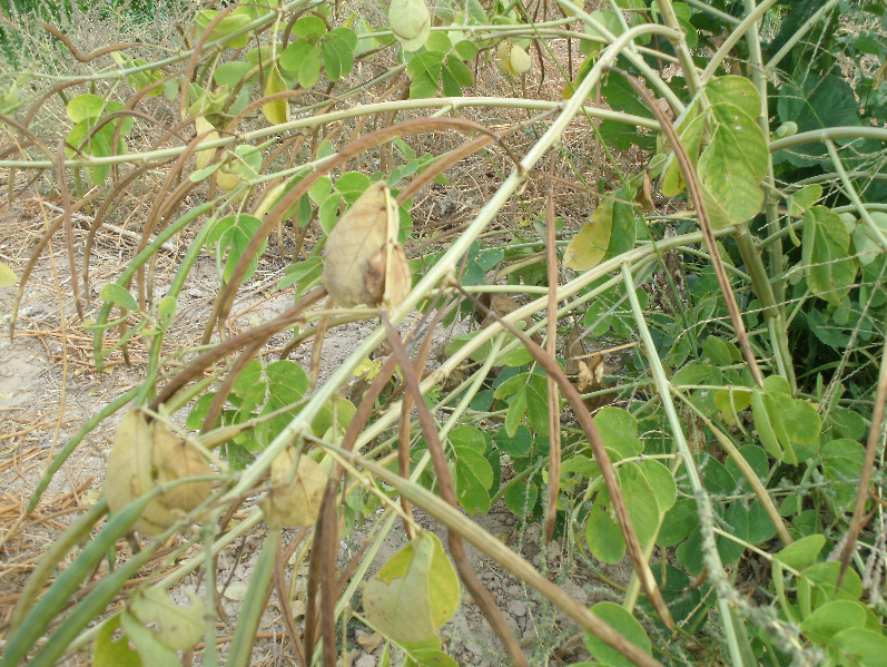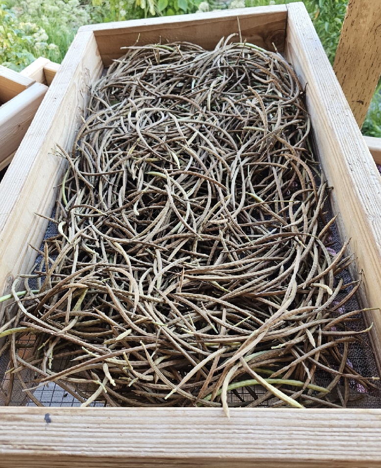 익은 결명자를 수확하여 말리고 있다