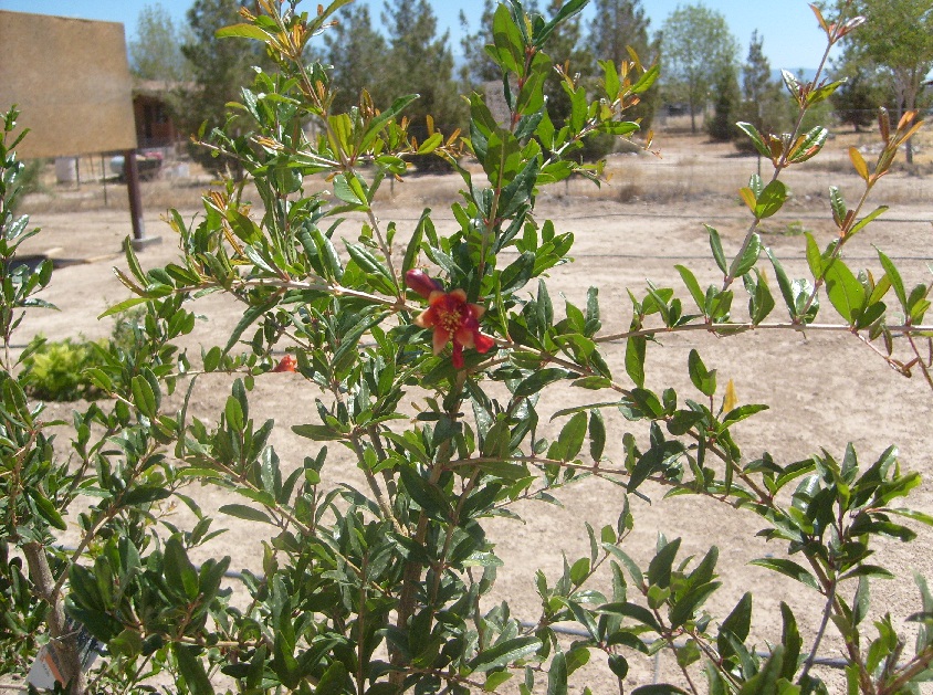올해 구입하여 심은 석류 나무에 꽃이 피었다.