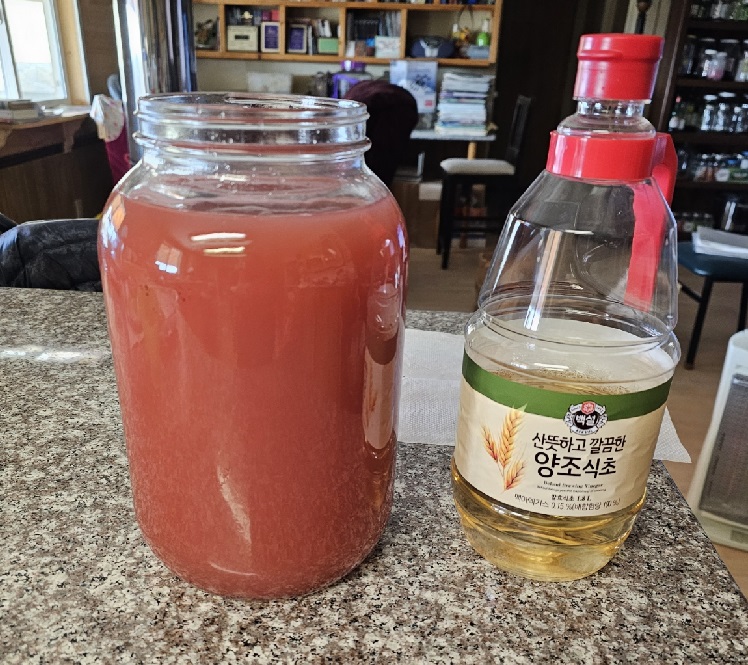 이제 재료량의 10~30% 의 식초를 첨가하여 초산발효를 시켜야 한다