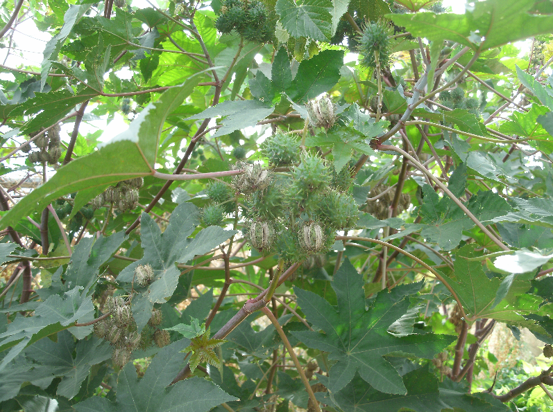 잘 자라고 있는 피마자 ( Castor ) 6월 ~ 7월에는 어린 잎을 따서 삶아 말려 나물로 만들어 먹는다.