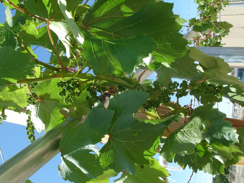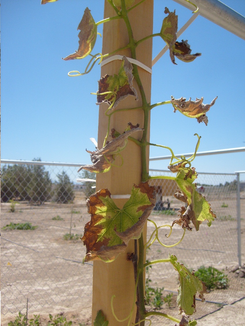 한국의 거봉포도 묘목을 LA 에서 구입하여 3월 하순경에 심었는데 그동안 잘 자라고 있다가 더위가 시작되는 6월이 되면서 부터 더위를 먹었는지 잎이 마르고 있다.