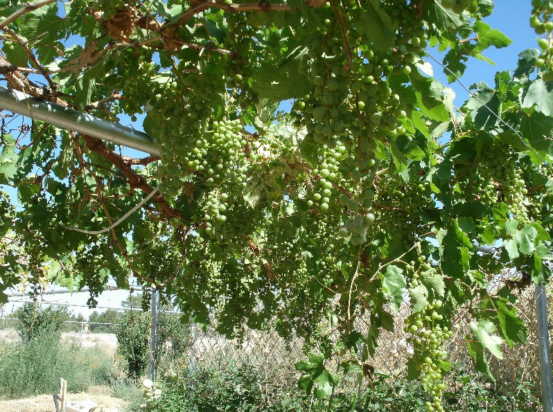 Las Vegas 에서 구입한 포도 나무는 싱싱한데 이곳의 더운 날씨에 익숙하지 않은 거봉 포도 나무는 잘 적응을 못하고 잎이 마르면서 날씨가 덥다고 어려움을 호소하고 있다.