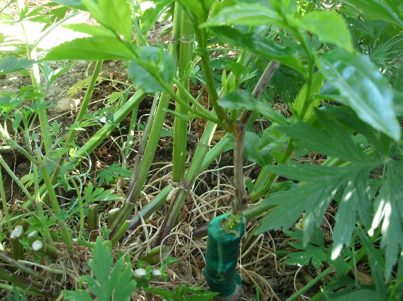 접붙이기 한 후 그늘을 만들어 주어야 한다 익모초가 자라서 그늘을 만들어 준 곳에서는 거의 100% 성공하였다