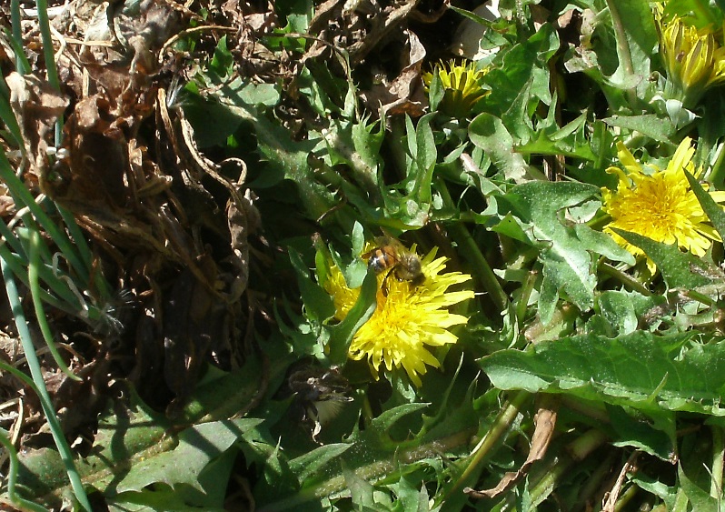 농장 여기 저기에 잡초처럼 자라는 민들레에 꽃이 피면 벌들이 찾아온다.