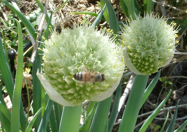 << 파 꽃에서 열심히 일을 하고 있는 벌 >>