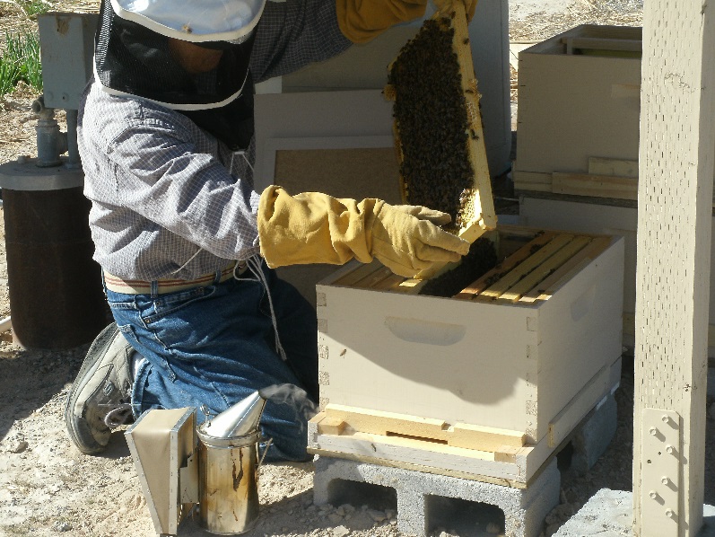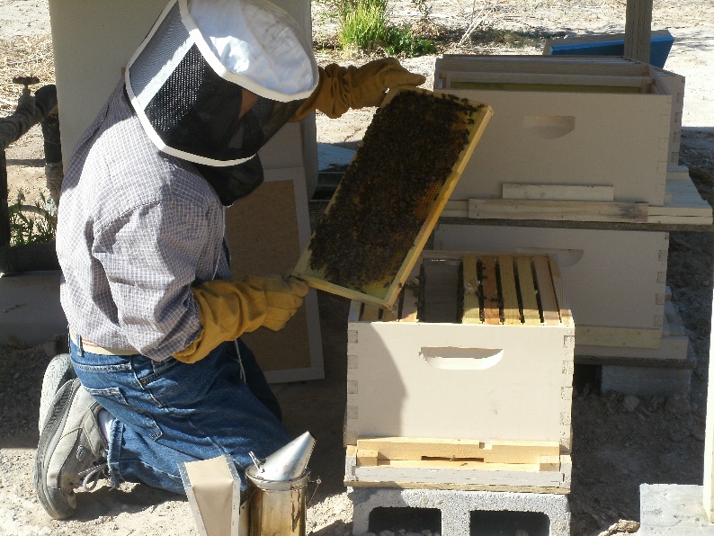 Las Vegas에서 Pahrump 농장으로 이동 한 후 바로 벌통 내부를 점검하였다. 폼은 노련한 양봉업자 같지만 실제 양봉경력 1년째인 초짜입니다.