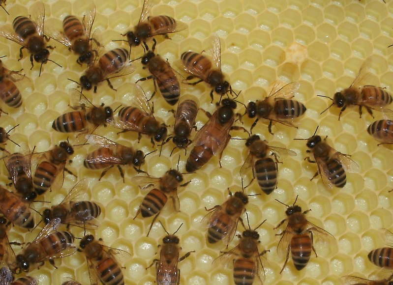 그런데 위 사진의 경우 여왕벌집이 일반 벌집 사이( Frame 중간 )에 있다.