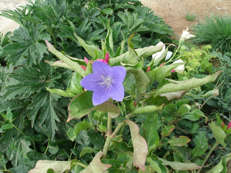 << 꽃들 사이로 도라지가 자라서 보라색 꽃을 피웠다 --- 9월 중순 >>