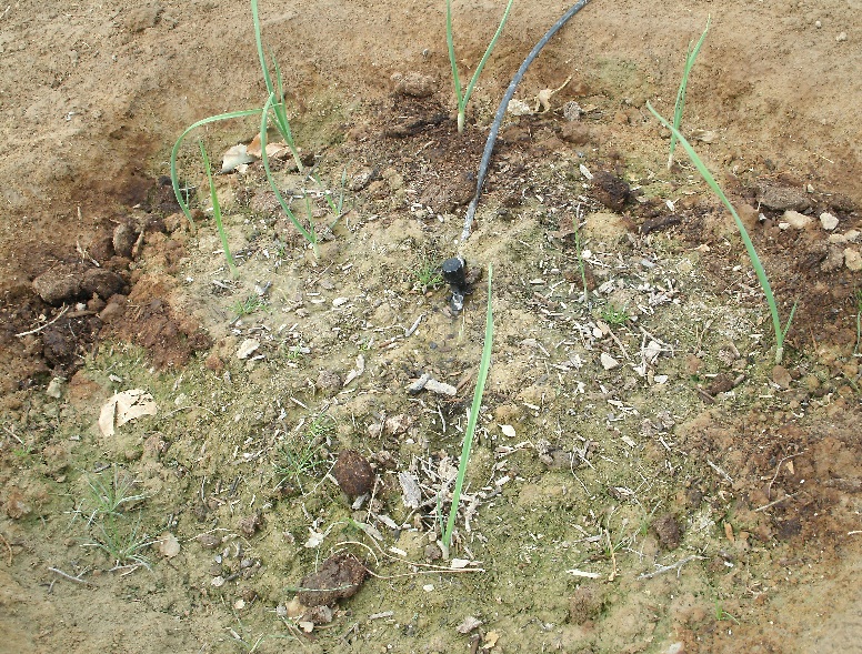 8월 초순에 파종한 마늘에서 벌써 싹이 나왔음