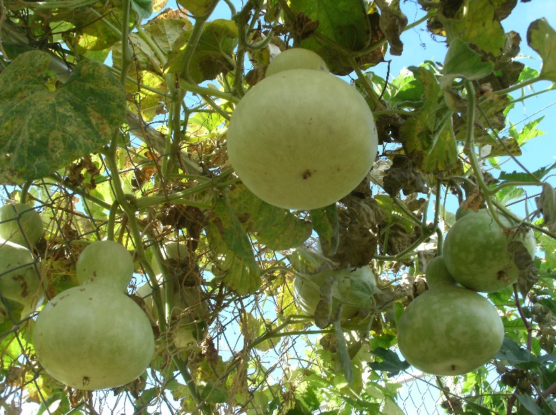 (1) 수확한 박 ( Gourd )을 삶아서 바가지를 만들었다