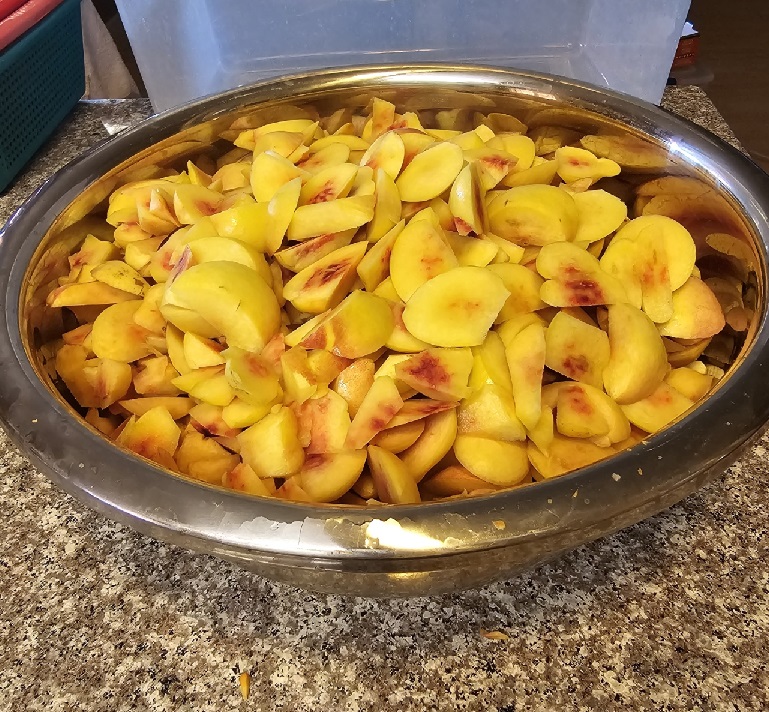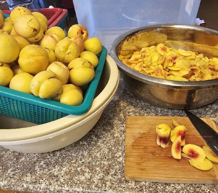 수확, 물로 세척, 씨앗 제거 작업, 수확한 넥타린의 량이 너무 많아서 재료 준비 하는데 많은 시간이 소요되었다
