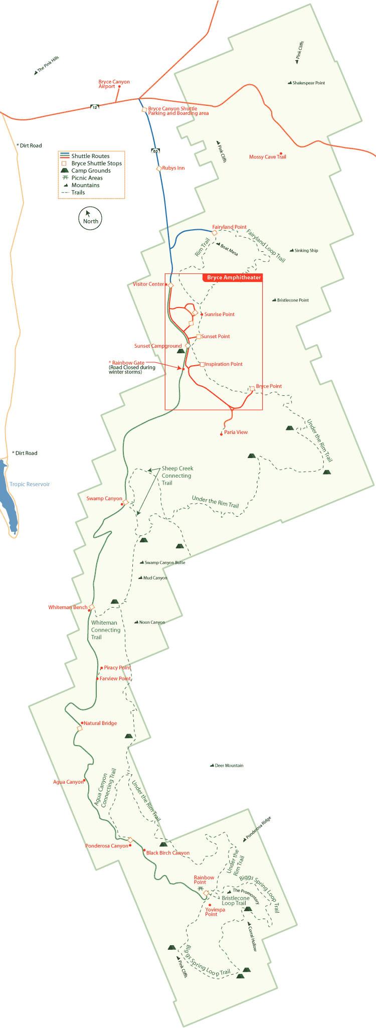 브라이스 캐년 공원 전체 안내 지도
