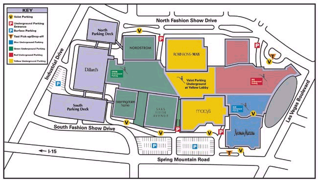 패션 쇼 몰 내에는 미국의 메이저 백화점인 Neiman Marcus, Saks Fifth Avenue, 오픈은 월~금요일 10:00~21:00, 토요일 10:00~19:00, 일요일 12:00~18:00