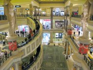 실내 천정에 하늘의 다양한 모습을 조명으로 연출하여 관광객에게 인기를 끌고 있는 포럼샵은 160개 넘는 세계 유명 메이커 매장과, 수족관,