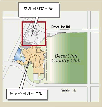 폭포를 만들고, 호텔 뒤로는 골프장을 건설 중인데, 앞으로 라스베가스의 또 다른 최고의 호텔이 될 Wynn