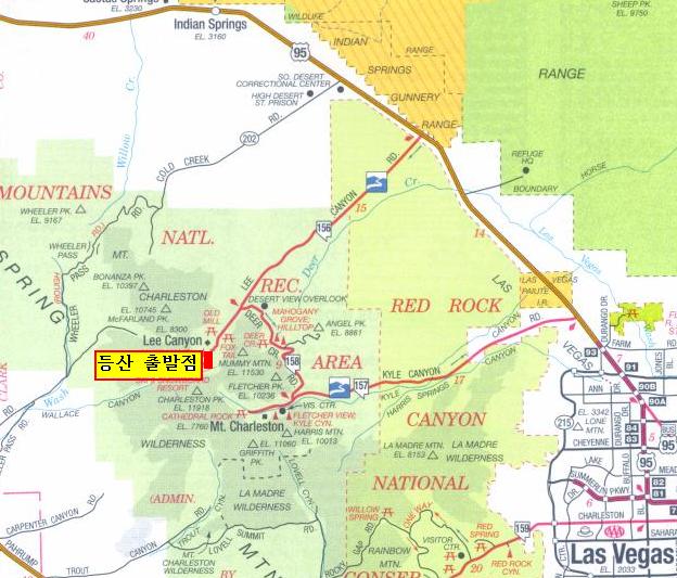 브리슬콘 등산로 ( Bristlecone Trail ) 가는 길 95번 North를 타고 가다가, 라스베가스 어디에서든지 1시간이면