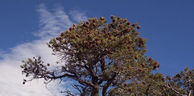 << 산으로 올라가는 등산로 주위에 많이 있는 잣나무에 달려 있는 잣 >>