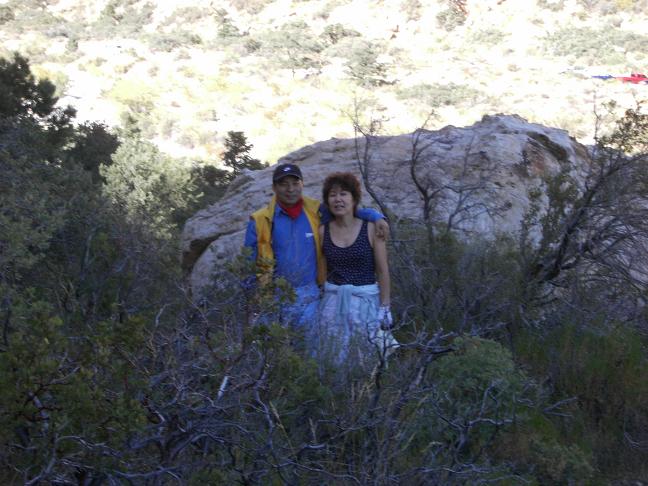 << 등산로에서,,, 부부의 모습 ,,,, >> <<이 등산로는 북쪽 능선을 따라 가기 때문에 항상 산의 그늘이 드리워져 있다 >>