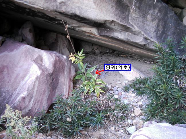 << 5 지점과 6 지점 사이에 돌 사이에서 자생하고 있던 약초 당귀의 모습 >>