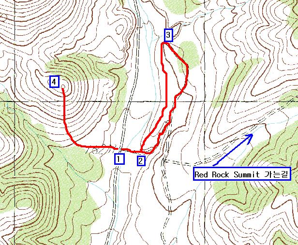 1 지점 : 등산 시작 지점 1 지점 ~ 3 지점 : 왕복 30분 정도 걸림 1 지점에서 4 지점을 왕복하는 등산로는