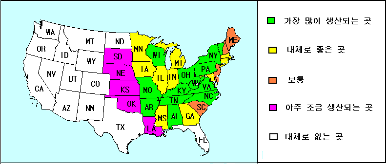 »ê»ï(ߣ߸)ÀÌ ÀÚ¶ó°í ÀÖ´Â Áö¿ª ¹Ì±¹¿¡¼ »ê»ï(ߣ߸)ÀÌ ÀÚ»ýÇϰí ÀÖ´Â Áö¿ª ¹Ì±¹¿¡¼ »ê»ï(ߣ߸)ÀÌ ¸¹ÀÌ ÀÚ»ýÇÏ´Â °÷À» ãÀ»·Á¸é ´ÙÀ½ÀÇ 19°³ ÁÖ(ñ¶)¿¡¼´Â »ê»ï(ߣ߸)ÀÇ ºÒ¹ýÀûÀΠäÃ븦 ±ÝÁöÇϰí ÀÖ´Ù. AL ( Alabama - ¾Ë¶ó¹Ù¸¶ ) --- ¸¹ÀÌ »ý»êµÇ´Â °÷