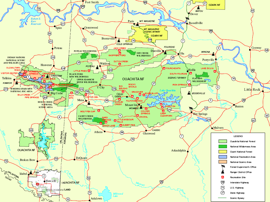 ¾ËĻ罺 ÁÖ(ñ¶)¿Í ¿ÀÅ©¶óÈ£¸¶ ÁÖ(ñ¶)¿¡ °ÉÃļ Ouachita National Forest Áö¿ªÀÌ ÀÖ´Ù.