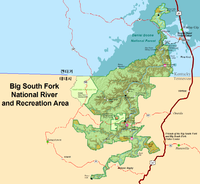<< ĵÅÍŰ ÁÖ(ñ¶)¿Í Å׳׽à ÁÖ(ñ¶) »çÀÌ¿¡ ÀÖ´Â Big South Fork NRRA >>