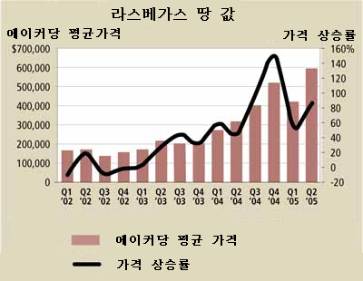 라스베가스 땅 값 변동 추세 ( 2005년 9월 현재 ) 2005년 9월 통계에 따르면, 2005년 2분기 ( 4월 ~ 6월 ) 의