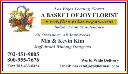 ÀüÈ : (702) 451 - 9005 Æå½º : (702) 433 - 0454 E-Mail : basketofjoy@hotmail.com ´ã´çÀÚ : Äɺó Å´ ( Kevin Kim ) À¥»çÀÌÆ® : www.flowerlasvegas.com