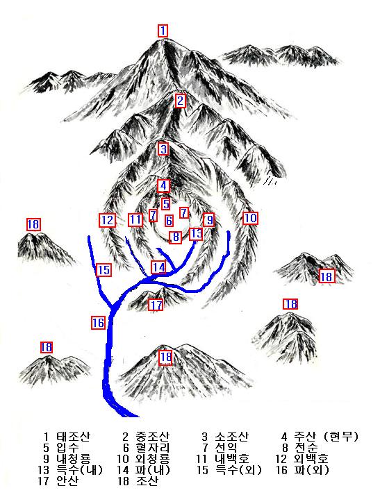 혈(穴) 자리 뒤쪽에 있는 주산은 뒷바람을 막고,