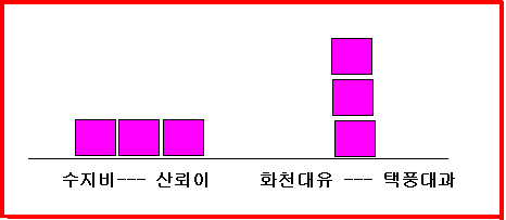 하늘 ( 천/天 ) 은 위에서 놀고 있고,,,, 물(수/水) 은 아래에서 따로따로 놀고 있다. 하늘은 자기가 없으면 모든 생물들이 숨을 못쉬고 죽는다고 큰소리 치고,,,