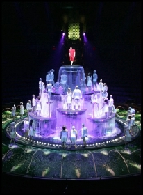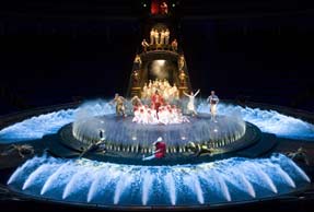 배우가 공중 그네로부터 다이브 할 때는 바닥을 밑으로 내려 수심을 깊게 해주고, 물 속에서 펼쳐진다는 사실만으로도 충분히 관객들을 사로잡으며 윈 라스베가스 호텔의 웹사이트에 가면,