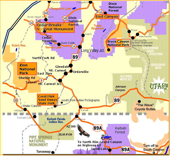 위치 ( 안내 지도 ) : << 브라이스캐년 자이언 캐년 안내 지도 >>