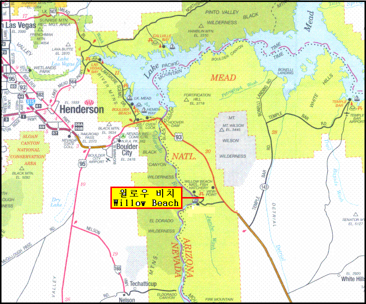 윌로우 비치 ( Willow Beach ) 까지의 지역을 이 곳에서는 낚시도 잘되어서 Willow Beach Marina에서 낚시도구도