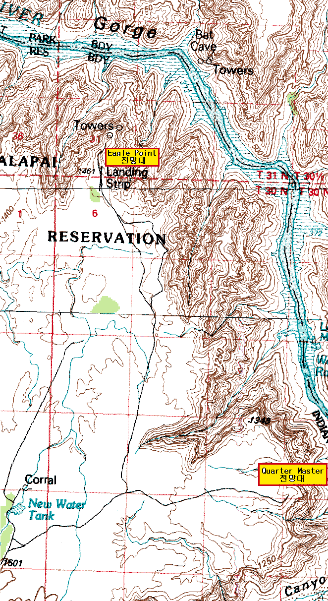 특징및 관련 이야기 이곳은 인디언 Hualapai 족이 거주 하는 지역이다. 중요 관광지 (전망대) Eagle Point Skywalk Glass Bridge ; 2007년 3월부터 오픈 / 입장료 : $25 Hualapai Market Hualapai 인디언 여인들이 민속춤을 추는 공연도 구경 할수 있다.