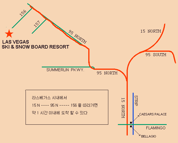Las Vegas SKI & SNOW BOARD RESORT 라스베가스 시내에서 지도에 보이는 것 처럼 15N, 95N,