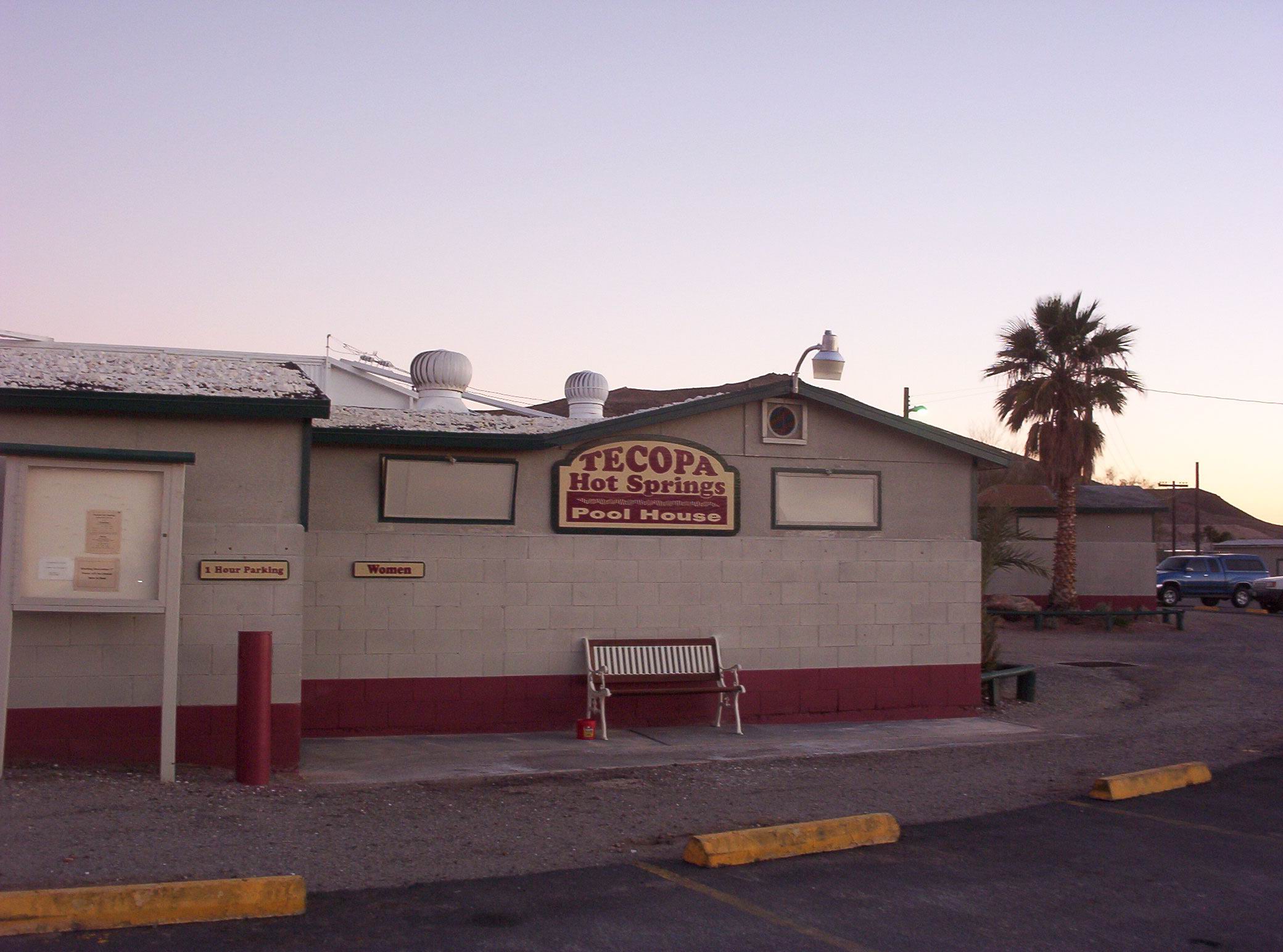 주위에 싼 가격으로 이용할 수 있는 모텔 이나 콘도 수준의 숙박 시설도 있는데, 그중에서 가장 이용하기 좋은 곳은 Delight's Tecopa Cabana 라는 곳인데 들어 가는 입구에는 풍차 같은 장식물이 있다. 그리고 이곳의 안내 웹 사이트는 www.tecopacabana.com 이다. 사설 RV 주차장도 있고 최근에는 마사지(Massage)를 하는 곳도 생겼다.