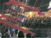 탄배로 헤엄쳐서 구출되어 공연시간은 20분 정도 이다. 길가 인도가 좁고, 구경하기 불편하게