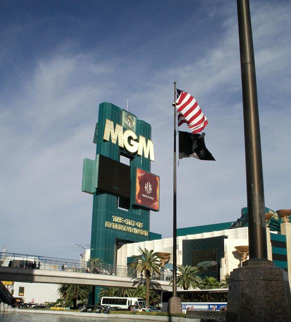 << 뉴욕 뉴욕 호텔 앞에서 바라본 엠지엠 호텔의 사자상 >>