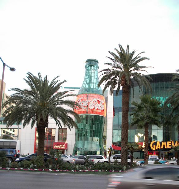 << 뉴욕 뉴욕 호텔의 길 건너편에 있는 대형 코카콜라 병으로 장식된 건물 >>