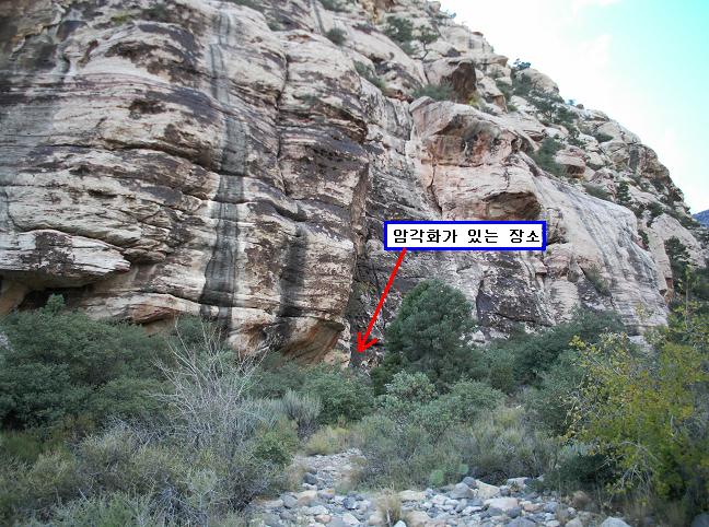 암각화가 그려져 있는 바위를 영어로는 페트로그리프 월 ( Petroglyph Wall ) 이라고 하며, 윌로우 스프링 주차장에서 페트로그리프 월( Petroglyph Wall ) 로 가는 등산로가 있다.