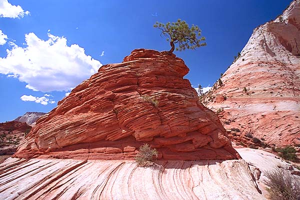 자이언 캐년의 바위에 뿌리를 박고 살아가고 있는 소나무 >>