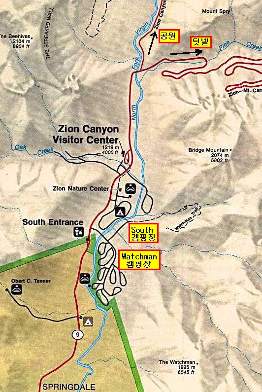 Watchman 캠핑장 ( 4월 ~10 월에만 오픈 / 겨울에는 Closed ) : 하루 사용료 : $16.00