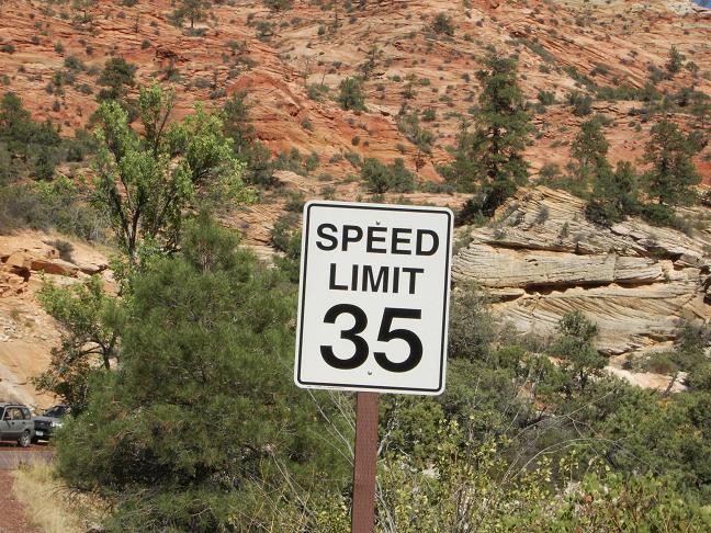 << 공원에서 터넬을 지나 가는길가에 있는 속도 제한 표시판 >>