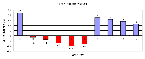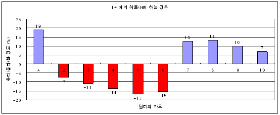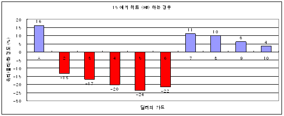 히트하면 어느정도 유리하고, 혹은 어느정도 불리한지를 퍼센트(%) 로 나타내는 그래프이다.