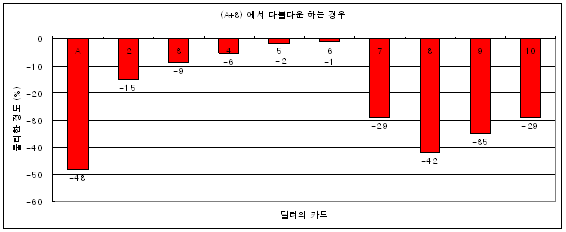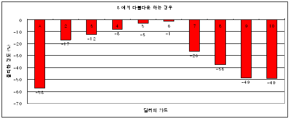 (1) 만약 딜러의 카드가 8일 때 히트(Hit) 했다면 10 % 만큼 손해를 보고,