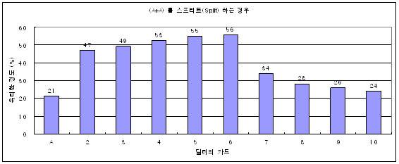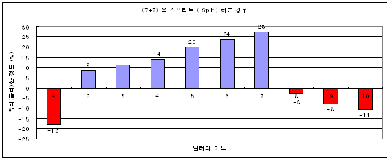 카드가 A, 7, 10 일 때 스프리트 하면 안 좋다고 그래프가