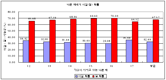 4-6. 패가 좋지 않을 확률 게임을 하다 보면 딜러는 계속 10+10 을 잡는데 이렇게 자신에게 좋지 않은 카드가 올